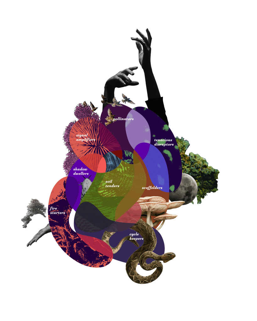 These archetypes are not fixed identities, but living constellations of practice. We each move fluidly among them, sometimes seeing ourselves, our Venture, or our Pod reflected in one archetype and, at other times, inhabiting another. Taken together, they form a map of creative energies that illuminate the many pathways of collective transformation.