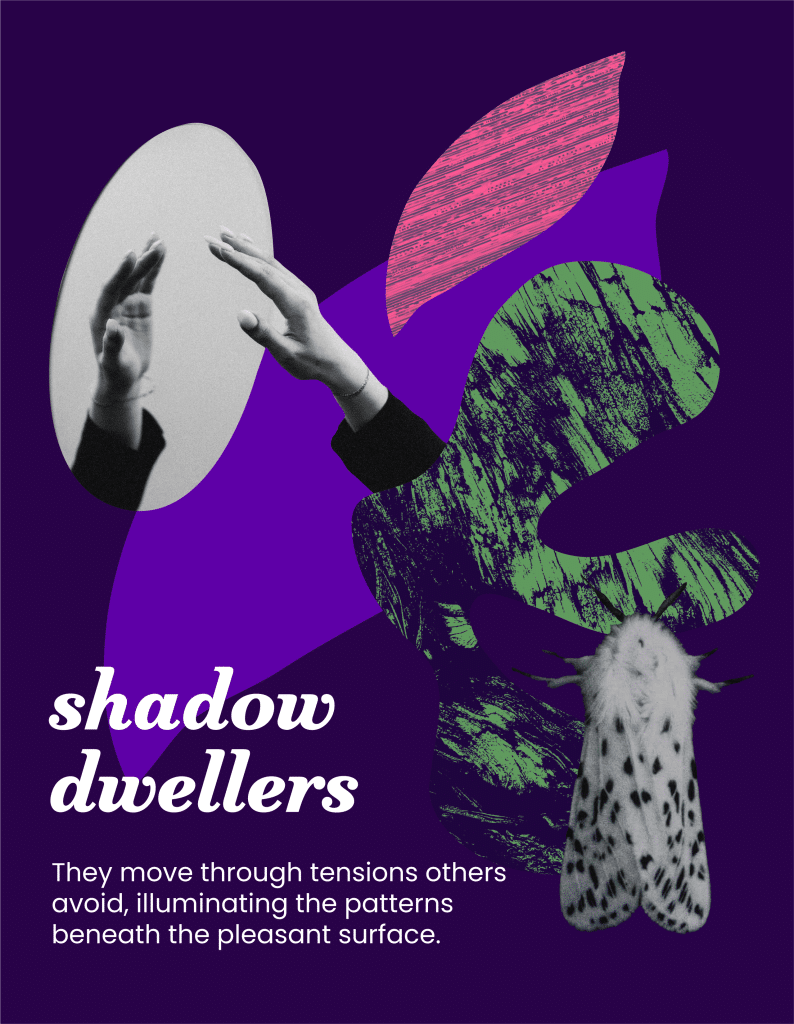 At the edges of what feels safe, Shadow Dwellers bravely face what others turn away from—grief, injustice, and hard truths. They hold up a mirror to systems and ask: “Is this what you want it to be?”
