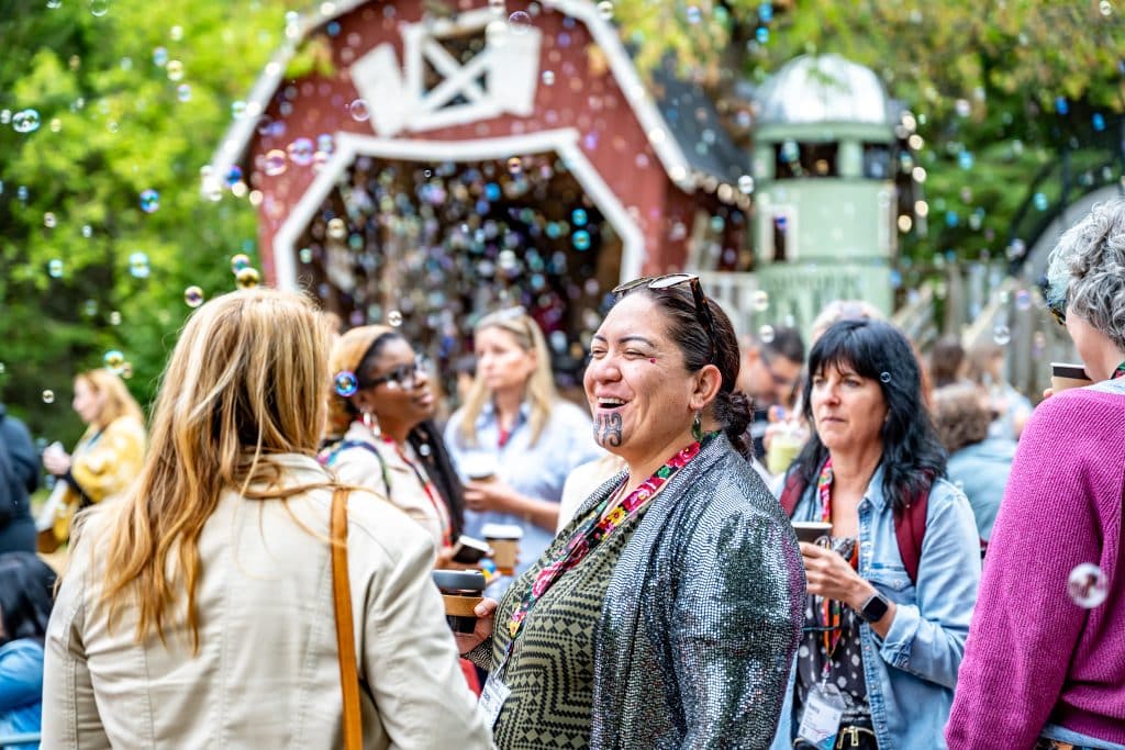 Our MC Andrea Menard, for example, moved as a bridge-being. She was ushering people between activities, but also dimensions. She guided, shaped, and invited the group into each new location not so much by directing, but attuning, opening, sensing when the field was ready to move, and finding the right language and posture to make those invitations.